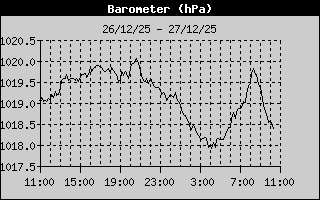 1019.3 hPa at 0:01 1017.9 hPa at 4:09 |